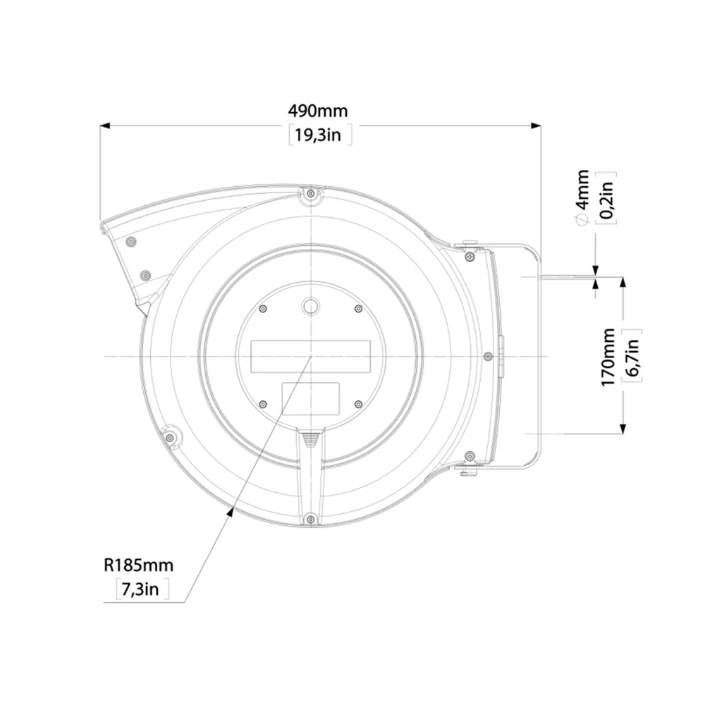 This hose reel features a high-performance technopolymer structure, designed for strength, durability, and resistance to wear. Equipped with a metal fixing bracket that is fully adjustable, it allows for easy mounting and positioning in your workspace. The automatic locking device enables the hose to stop precisely at the desired length and can be manually disconnected when free movement is needed.